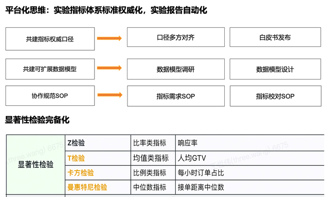 除此之外,显著性检验也是实验解读中的一个核心组成部分。显著性检验的主要目的是确定实验效果是否具有统计意义,而不仅仅是随机波动所导致的。因为不同指标和实验方式对显著性检验的需求各不相同,我们在构建指标体系的同时,也开发了一个全面的显著性检验体系,以适应实践中各种不同类型指标的解读需求。