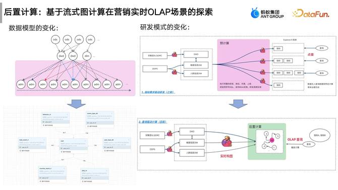接下来介绍支付宝营销场景后置计算的一个案例,即流式图计算在实时 OLAP 场景的探索。采用流图进行后置计算后,在数据模型和研发模式上都发生了比较大的变化。