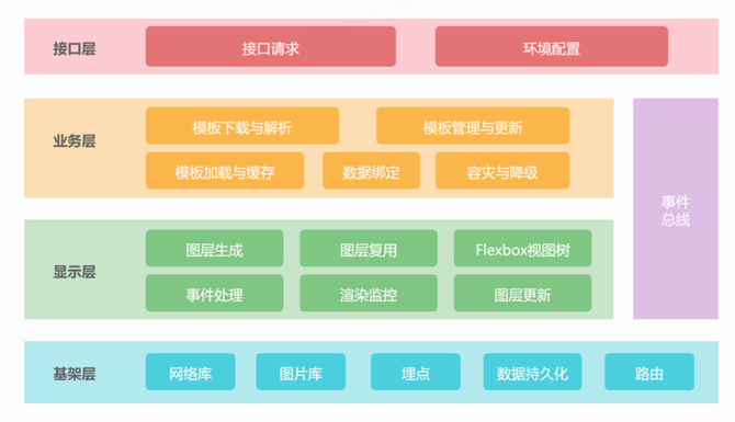动态化模板容器我们采用的是基于FlexboxLayout渲染引擎(谷歌开源框架)的Native + DSL方案。动态化能力建设主要可以分为四个部分:DSL定义、动态视图管理、视图构造和数据绑定。