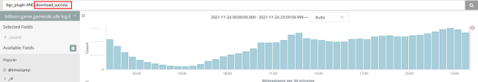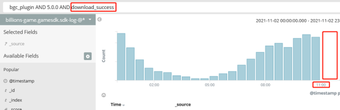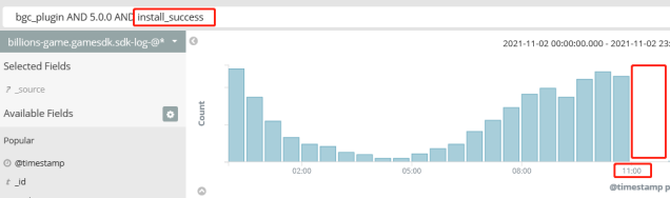 同样以插件为例,2021-11-02 11:00 点开始对插件进行回滚。回滚后下载和安装数据断崖式归零,同时成功卸载的日志大量产生。具体数据情况如下图: