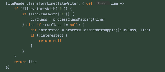 如果要求游戏接入方不做混淆处理,对游戏和SDK都存在一定的安全隐患。如果SDK对可能被插件调用的API做特殊处理不进行混淆,则需要大量的人工介入操作,且无法完全预计后续业务迭代过程中可能需要用到的API。可以采用在构建混淆结束后,读取混淆结果,输出混淆结果为proguard-rules规则,确保游戏二次混淆后,游戏SDK不会被再次混淆。