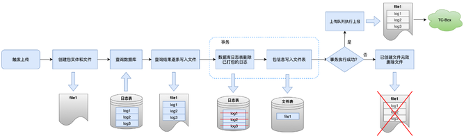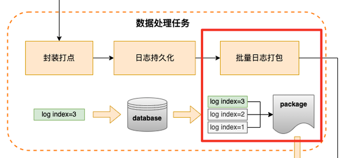打包过程是"将日志从数据库批量转移至文件"的过程,蓝色框所示环节细化如下图所示。