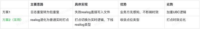 针对reallog问题的优化,可采用两种方案:日志重复转为包重复或reallog打点退化为实时打点。