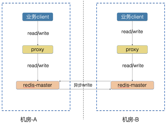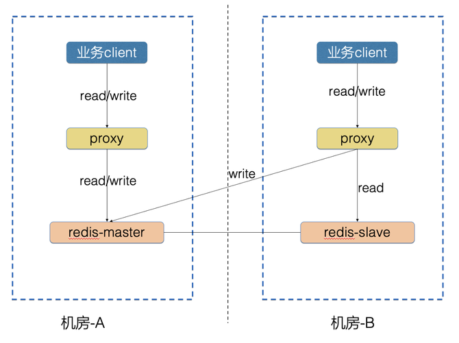从机房里的 Redis-proxy 需要跨机房写,受网络延时影响,业务在从机房里的写耗时高于主机房