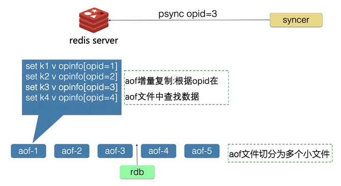 时间T1 T1时间,用户在机房-A 写入请求 set k v1 T2时间,用户在机房-B 写入请求 set k v2,并记录k的最后修改时间为T2 由于网络同步延时,T3时间,syncer 把T1时间写入的 set k v1请求发送到了机房-B 机房-B 的 Redis 执行 set k v1 时发现 timestamp 为T1,但 k 的最后修改时间为T2 由于T1 以上是冲突检测的基本原理,这是一个旁路统计,帮助用户发现一些潜在冲突数据。 4、增量数据存储和读取问题 因为 syncer 只是同步组件,不会存储数据,所以需要考虑当网络故障时,增量数据的存储和读取问题。 为了解决这个问题,我们对 Redis 的 aof 机制进行了改造,可以在网络故障时,增量数据都堆积在 Redis 的磁盘上,在网络恢复后,syncer 从 Redis 里拉取增量 aof 数据发送到对端机房,避免数据丢失。 aof 机制改造有:aof 文件切分、aof 增量复制、aof 异步写盘 将 aof 文件切分为多个小文件,保存增量数据 当增量数据超过配置的阈值时,Redis 自动删除最旧的 aof 文件 当 Redis 重启时,加载 rdb 文件和 rdb 之后的 aof 文件,可以恢复全部数据 当网络故障恢复后,syncer 根据故障前的 opid 向 Redis 请求拉取增量数据,发送到对端机房 开源 Redis 是在主线程中进行 aof 写盘,当磁盘 IO 过高时,Redis 写盘可能造成业务访问 Redis 耗时抖动。因此我们开发了 aof 异步写盘机制: Redis 的主线程将 aof 数据写入 queue 中 bio 线程来消费 queue bio 线程将 aof 数据写入磁盘 这样 Redis 的访问耗时不受磁盘 IO 的影响,更好的保证稳定性。