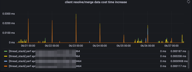 线程栈导出方法的平均耗时,如果该操作耗时显著升高,且调用栈未有明显变化,则代表性能恶化。