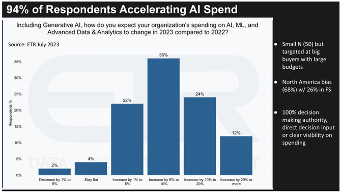 正如我们之前提到的,在下面的数据中显示,94%的客户报告称他们将在2023年增加他们在AI上的支出。