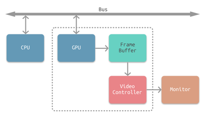 通常计算机屏幕显示是CPU与GPU协同合作完成一次渲染,如下图所示: