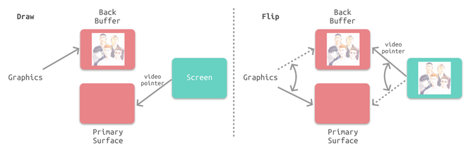 4. 视频控制器会通过垂直同步信号VSync逐帧读取帧缓冲区的数据并提交至屏幕控制器最终显示在屏幕上。