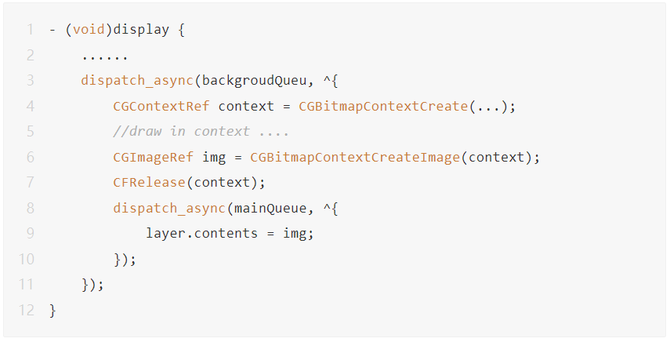 异步渲染:可以将文本和图片在将内容提交给layer.contents之前交给并行队列处理,最后交由主线程进行显示。