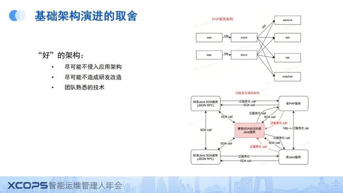 最终,我们选择了semi-SOA的方案(一种类似于半服务化思路、内部我们称呼为泛服务调用),通过semi-SOA让新老PHP服务、以及新老Java服务之间可以方面的互通互联,同时整体系统又具备服务化治理能力,最重要的是所有业务研发团队不需要立即参入大规模改造,这种“过渡型技术方案”给研发团队预留了充足的按需改造时间,有条件的业务研发团队可以先行改造,去PHP化,新的Java服务与现存PHP服务之间又可以很好的兼容。
