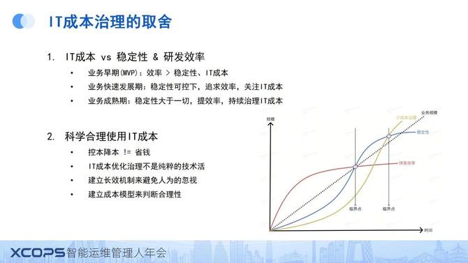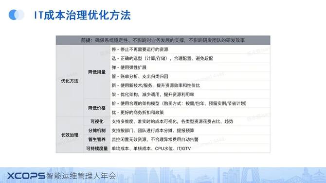 其实,IT成本治理的关键点是IT资源是否做到了很高程度的科学使用,资源效率是不是达到了健康水平,唯省钱目的是不对的,这可能会对业务发展带来损害,如果取得了IT成本治理结果而导致稳定性风险或者研发效率大大降低,那这样是不划算的,大家根据自己公司业务发展情况平衡看待吧。