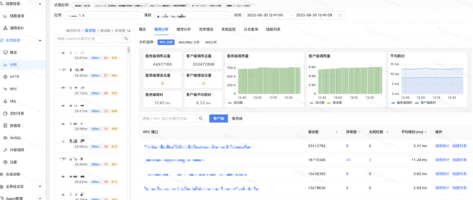 平台以应用视角为中心,利用Agent集成的监控数据采集,构建了监控图表大盘,通过不同的元数据分类,平台支持HTTP,RPC,消息,数据库,缓存等各个独立视角的监控数据,以大盘曲线结合表格下钻的形式展现。