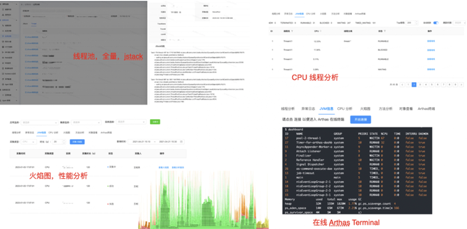 平台还集成了Jstack,Arthas等使用频率较高的定位工具。通过Agent连接,用户可以在平台上使用工具直接对服务进行信息采集。采集结果被收集后,平台提供更友好的展示和进一步分析的能力。