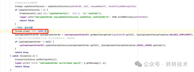 找到问题,测试环境验证一下猜想,updateCostSuccess后,延迟事务提交,基本可以稳定复现问题。