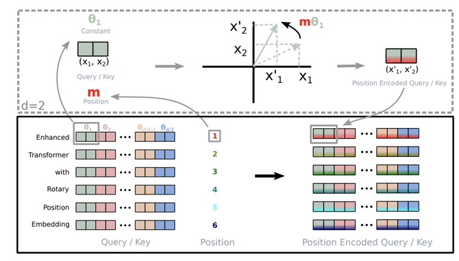 RoPE 旋转位置编码,最早来自 RoFormer:Enhanced Transformer with Rotary Position Embedding这篇论文。下图源自论文。