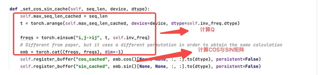 下面我们展示下 Huggingface 的 Transformer 对应的计算 COS 和 SIN 矩阵的计算代码: