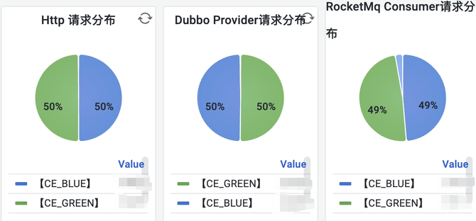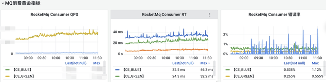 因为蓝绿集群的生产者和消费者对队列进行了绑定。所以只要调整蓝绿生产者的消息比例就可以调整整个MQ的消费流量比例。而蓝绿生产者的消息比例一般由RPC流量决定。所以调整RPC的流量比例,MQ的流量比例也会得到相应的调整。不过会有一定的滞后(5-10s)。