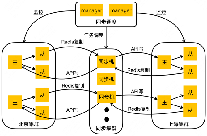 同 Squirrel 一样,Cellar 也通过建设集群间数据同步能力,实现了跨地域的容灾架构。不同的是,Cellar 因为是自研,无需考虑与社区版本的兼容性,同时为了简化部署结构、降低运维成本,它把集群间数据同步功能做到了存储节点内部。如上图示例的北京集群 A 节点、上海集群 H 节点,在接收到写入之后,除了要做集群内的数据同步以外,还需要把写入数据同步到跨地域的另一个集群上。