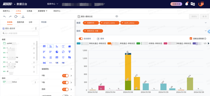 • 支持不同维度可视化打分结果:不同评测任务,观察评分结果的维度是不一样的,这里我们依托于公司的BI工具平台——云台来支撑,通过提供评测明细表,拖拽式配置可视化看板