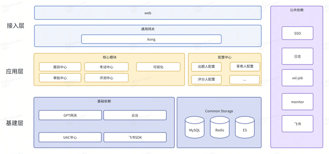 应用层: 拉拉智评简单来说就是一个集成出题、题目管理、试卷管理、考试、评测的系统,因此将核心模型进行封装,与之对应,需要配置化能力开放的单独封装