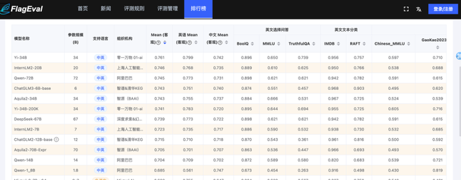 智源研究院的FlagEval 天秤大模型评测平台大模型评测排行榜