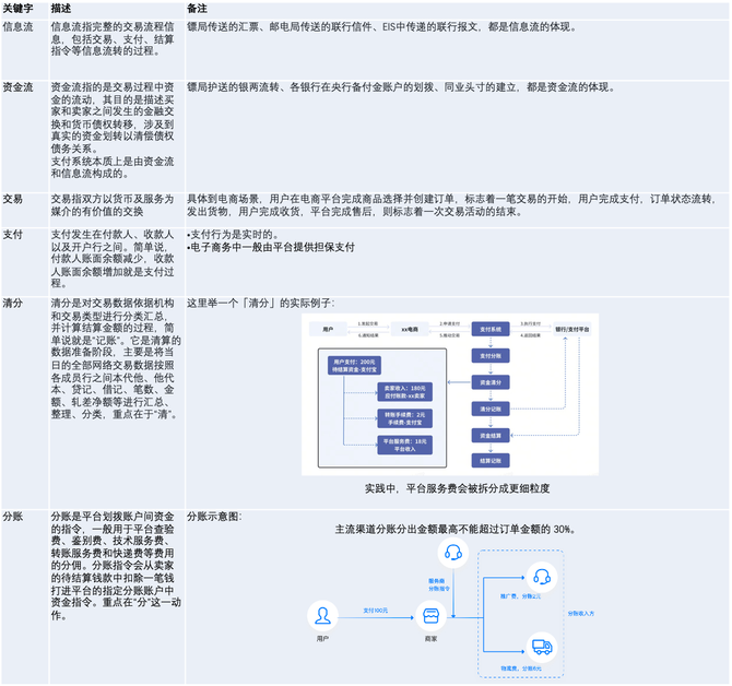 支付系统一般指提供支付清算服务、实现支付指令传送及资金清算的系统,由有支付牌照的支付公司提供。支付系统是连接消费者、商户(或平台)和金融机构的桥梁,实现了支付、资金清算、查询统计等功能。这里系统的解释一下涉及到的相关名词,便于我们后文展开详细介绍。