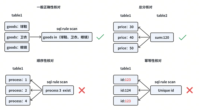 一般正确性校验:例如某些支付业务只能用于特定的商品类型,则可以通过自定义SQL校验规则来进行校验。