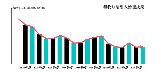 随着得物业务规模的迅猛发展,得物App可用率、资损防控、隐私合规、数据安全等方面面临着严峻挑战。得物技术依据业务特性分而治之,同时,依据生产故障等级逐层降级达到化整为零的效果,取得生产故障总数连续下降的佳绩。如下图所示: