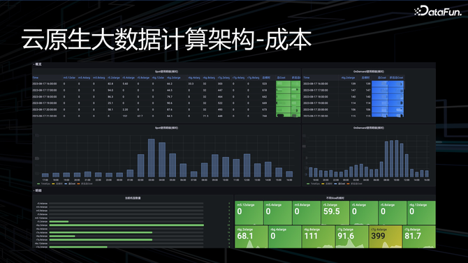 上图是成本看板。原本 AWS 两天才会出一次账单,使用自研架构后,每个小时就会出一个账单,包括单价花费以及每个机型的使用时间。