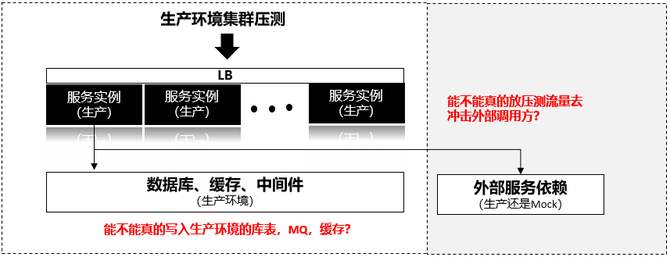 例如防止压测数据污染线上数据,污染缓存,干扰线上指标统计,误触线上的熔断降级,避免没做好准备的外部依赖方被压测打挂等等。