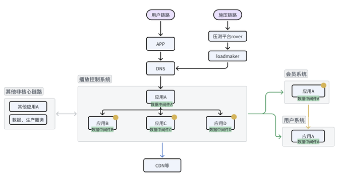 明确压测核心链路:播放、会员权益系统、会员权益监控系统等