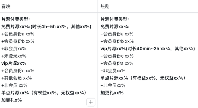 热剧:付费视频(付费流量历史峰值占比60%,非真实数据)