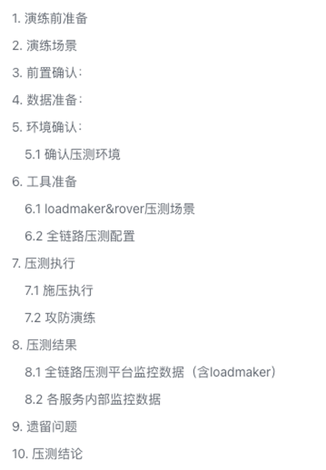 制定压测实施checklist,尽可能详尽说明每一步操作和确认项,避免遗漏