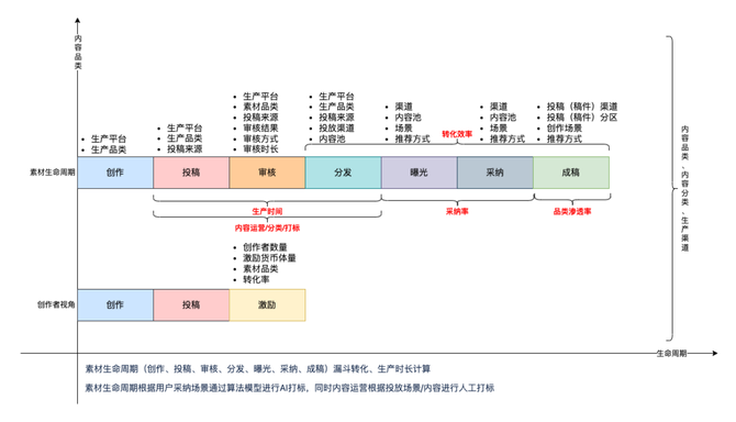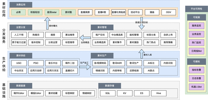 在创作素材供给方面,B站的素材中台拥有60种品类、1000万+的素材和20万+标签覆盖了近百种维度,为创作者提供了海量且多样化的素材选择,降低了寻找和整合素材的时间成本,还使得创作者能够快速获取高质量的素材,激发创意灵感,提升创作效率。同时为各个创作型业务提供素材生产、运营、分发一站式管理服务平台。素材中台自身已形成一个完整的内容生态,完善的素材工业化生产流程、稳定的UGC/PGC供给渠道、健康的素材消费与创作激励反馈是构成素材生态的基础。