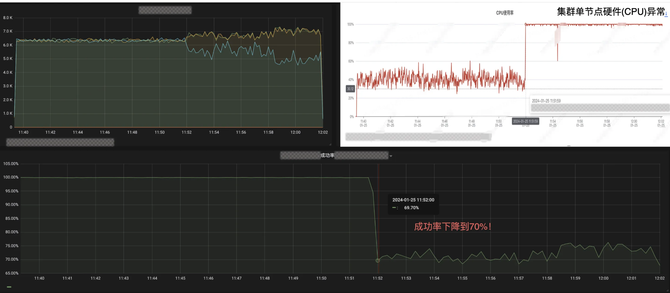 集群单节点异常,个别异常节点可用率影响集群整体可用率。
