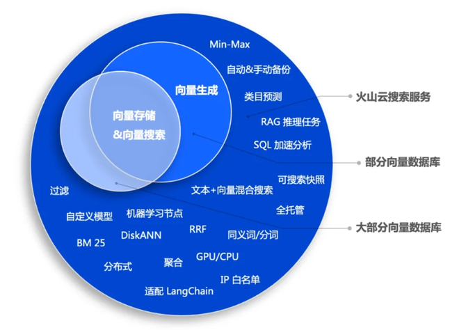 下层则是向量检索能力。作为一项基础技术,单纯的向量检索能力可能并不会引起开发者的太多关注。但是在火山引擎云搜索服务的 tob 过程中,他们发现 RAG 场景不乏向量数据规模庞大的客户,从常见的千万级别,到 10 亿级别,甚至到 100 亿级都有。在这种规模条件下,向量检索解决方案选型就尤为重要,因为此时向量数据库的成本和稳定性都会面临非常大的挑战。