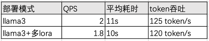 为了验证多Lora的性能,我们特意用Llama3-8b模型,L20GPU显卡进行了压测对比,数据如下: