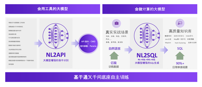 在BI领域模型中,主要由NL2API和NL2SQL两大核心部分组成。