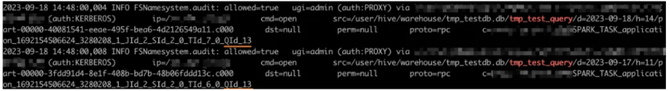 这样可以基于每条的 SQL execution id 关联整条链路,在 SQL lineage 层面可以知道哪个 session 的哪次执行读取了什么数据,写入哪张表,在 HDFS 的 Audit log,可以看到具体是哪个 SQL 对应的 ID 访问了哪些数据文件,以达到精细化追踪和运营的目的。