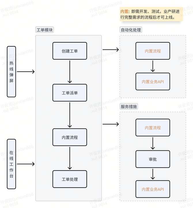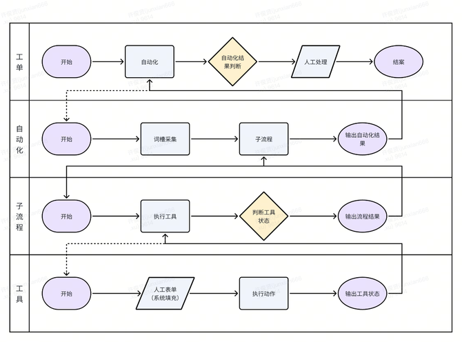 通过模块化和流程化的设计,不仅可以实现高效的功能扩展,而且可以确保多数工单处理场景被覆盖,从而提高整体系统的适应性和灵活性。