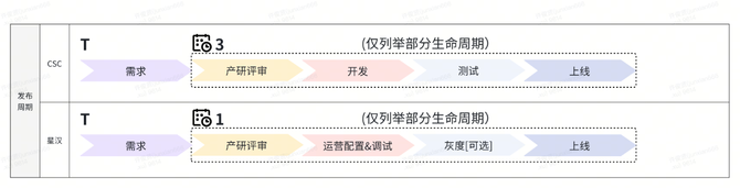 听起来挺符合常规理解,需求通常是需要编码才能实现,旧系统(CSC)设计亦是如此需研发人员进行编码经过完整的“上线周期”才可以交付使用,我们来看看 CSC 是如何设计的