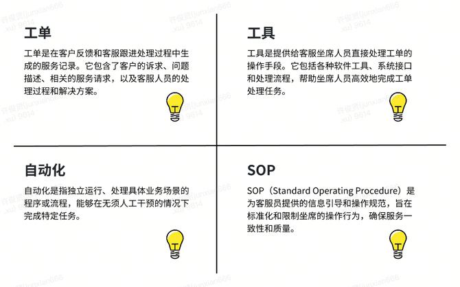 在工单管理场景中,清晰界定每个模块的作用,有助于优化和理解整个服务流程。工单作为客户反馈和客服处理的记录,结合工具提升操作效率,通过自动化手段处理流程以及SOP规范操作行为,共同提升了整体服务质量和客户满意度。