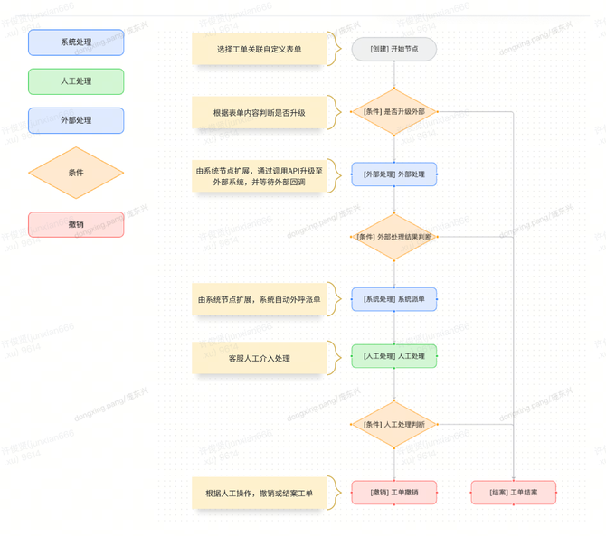 自定义流程:工单流转路径由预配置的流程决定,实现定制化处理。