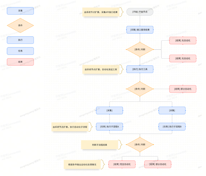 ○ 动态调整:根据采集到的数据,动态调整后续流程走向,提高自动化处理的智能化水平。