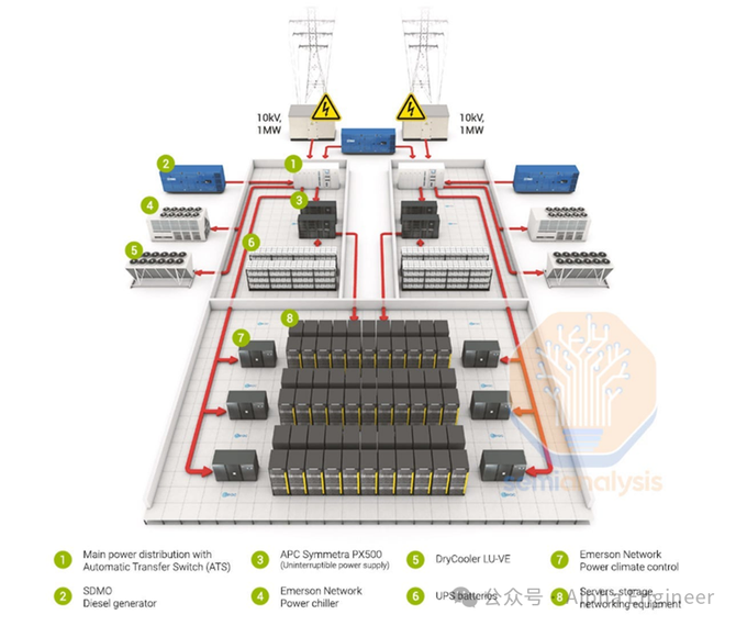 当然,这张电力输送图会随着数据中心容量的不同而形成很大差异,但是整体的思路和电力流向是相似的。