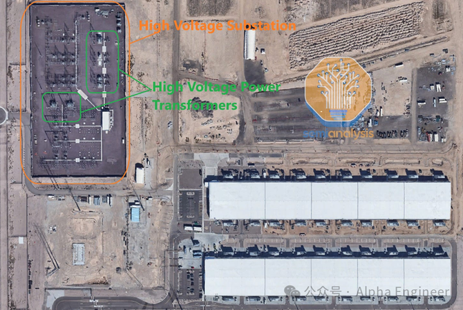 现代超大规模数据中心往往在现场设有高压变电站,例如下图中Microsoft的站点。