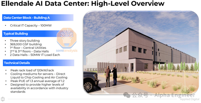 这些数据中心通常构成一个大型园区,园区内有多栋相互连接的建筑。这些园区的额定功率通常高达数百MW,其中每栋建筑的功率约为40-100MW。