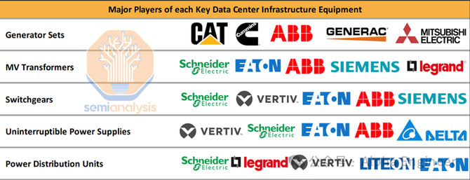 值得关注的电气设备供应商包括:Schneider、ABB、CAT、VERTIV、EAT-N等。