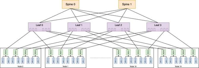 不同SU的GPU需要跨Spine通信,通信路径为HCA -> Leaf -> Spine -> Leaf -> HCA。